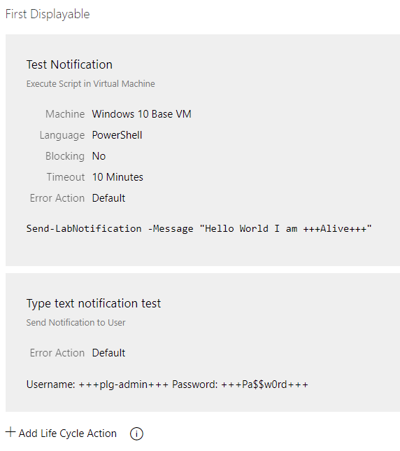 Script = use the command: Send-LabNotification -Message "some text"