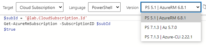 This is now supported along with the addition of new languages/versions. Azure CLI has additionally been added. You can upgrade existing labs by changing the version in the script settings (see attached image).